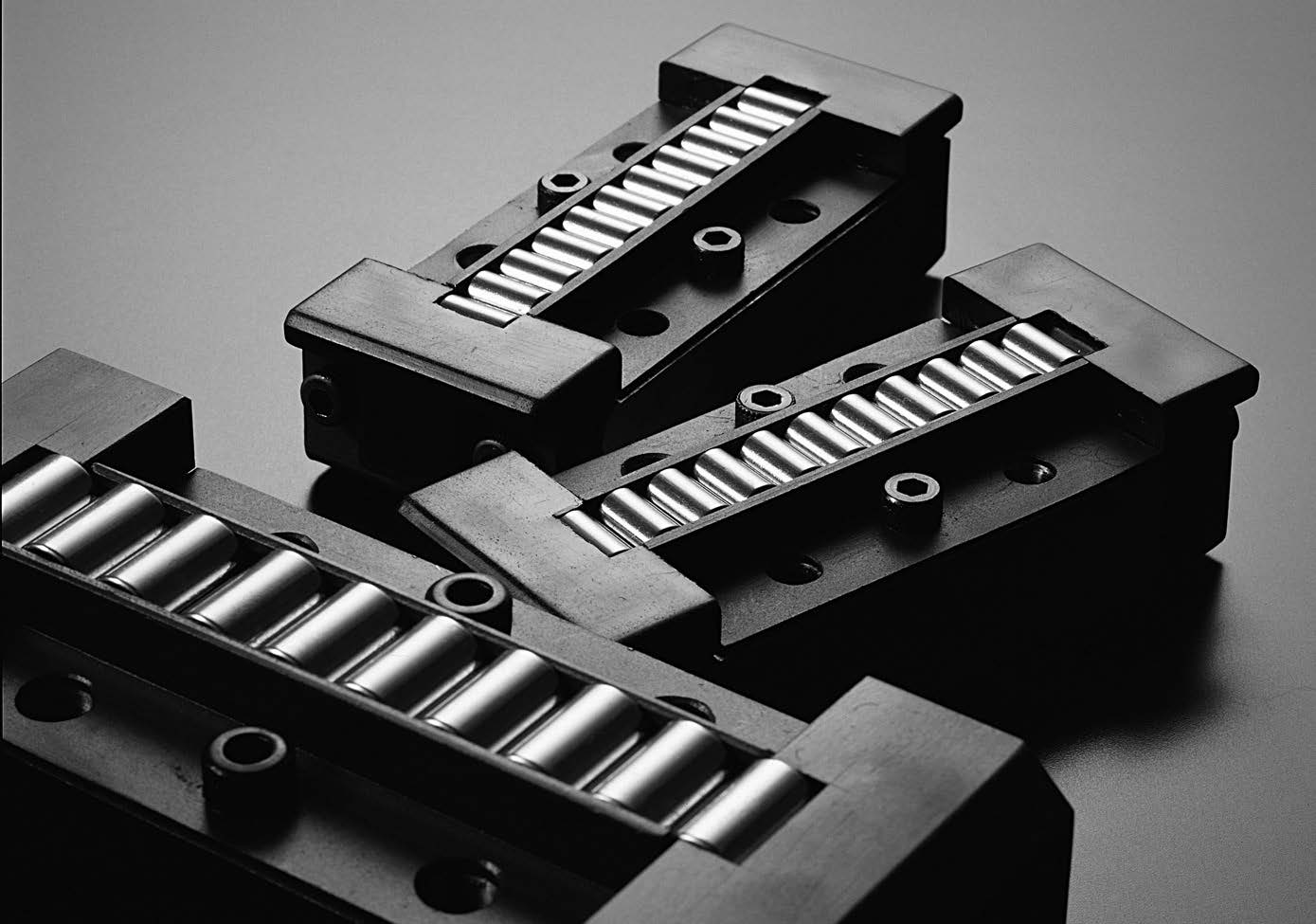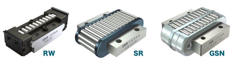 Patins de Rolos da IKO possui rolos de alta precisão integrados em um canal com acabamento de superfície impecável devido ao esmerilhamento preciso, permitindo alta rigidez e rigor. Além disso, como a variação da altura do conjunto pode ser selecionada em unidades de 2 μm, a carga pode ser distribuída de maneira uniforme até mesmo em um ambiente de múltiplo uso. A estrutura permite aos rolos serem guiados com precisão sem criar assimetria, rendendo uma movimentação linear extremamente estável e suave.